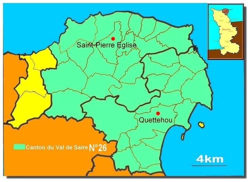 Canton du Val de Saire regroupe les anciens canton de Quettehou et de Saint-Pierre-Eglise (17.775habitants)