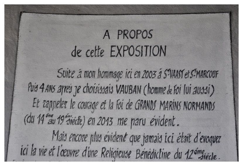 Une exposition qui va se prolonger jusqu'en septembre, un évènement incontournable. il faut lire les textes pour saisir la démarche, puis se laisser imprégner par les dessins et l'ambiance du lieu.