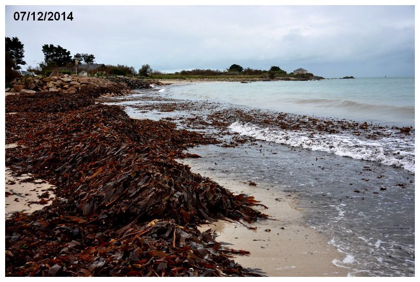 Le vent de Nord/Nord-Est de la semaine conjugué avec une marée de coefficient 90 a quelque peu modifié l'aspect de la plage avec notamment de forts apports d'algues.