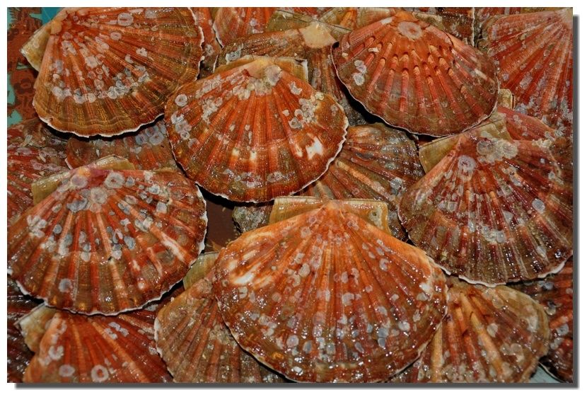 Ma dernière sortie sur les quais (mercredi), confirme la réputation de la coquille de la "Baie de Seine" : beau produit et de qualité avec une superbe noix, je trouve que pour la saison le corail est bien développé. En vente directe, je les ai payées 5,00€ le kilogramme.